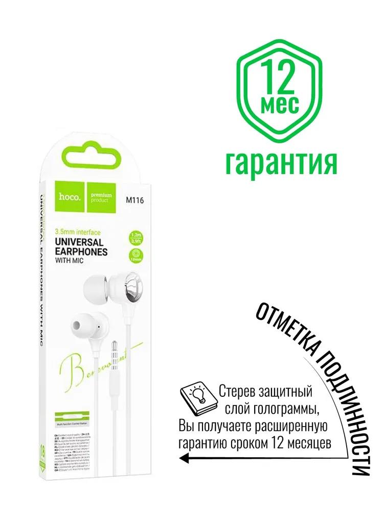 Наушники Hoco (6942007644945) M116 White белый - Интернет-магазин У Гриши: бытовая техника, электроника, товары для дома и др.
