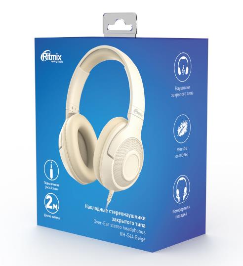 Наушники Ritmix RH-544, накладные, складная конструкция бежевый - Интернет-магазин У Гриши: бытовая техника, электроника, товары для дома и др.