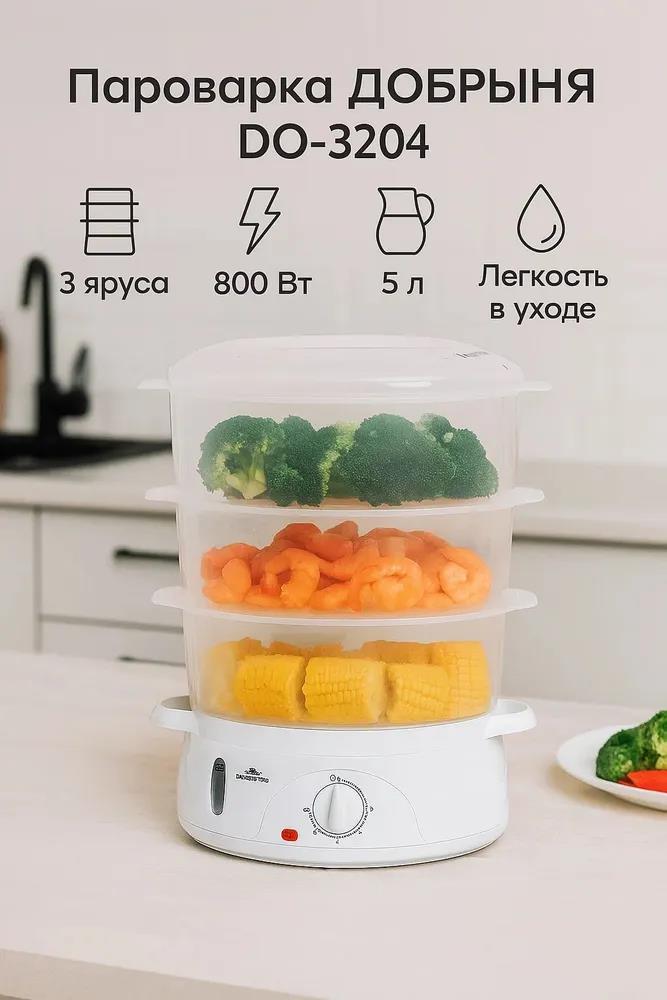 Пароварка Добрыня DO-3204 (белый) - Интернет-магазин У Гриши: бытовая техника, электроника, товары для дома и др.