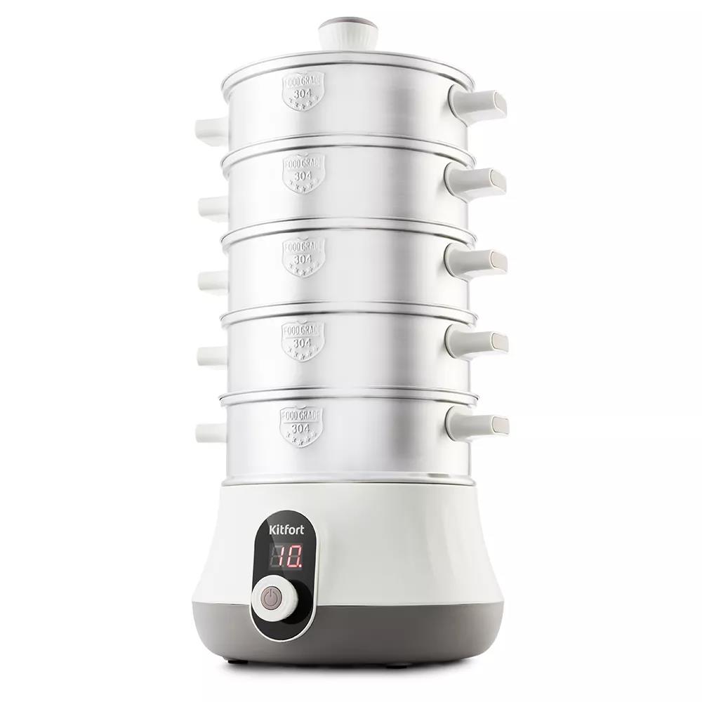 Пароварка Kitfort КТ-2035 600 Вт. Количество уровней: 5. Таймер приготовления: до 60 минут. (серый, белый) - Интернет-магазин У Гриши: бытовая техника, электроника, товары для дома и др.