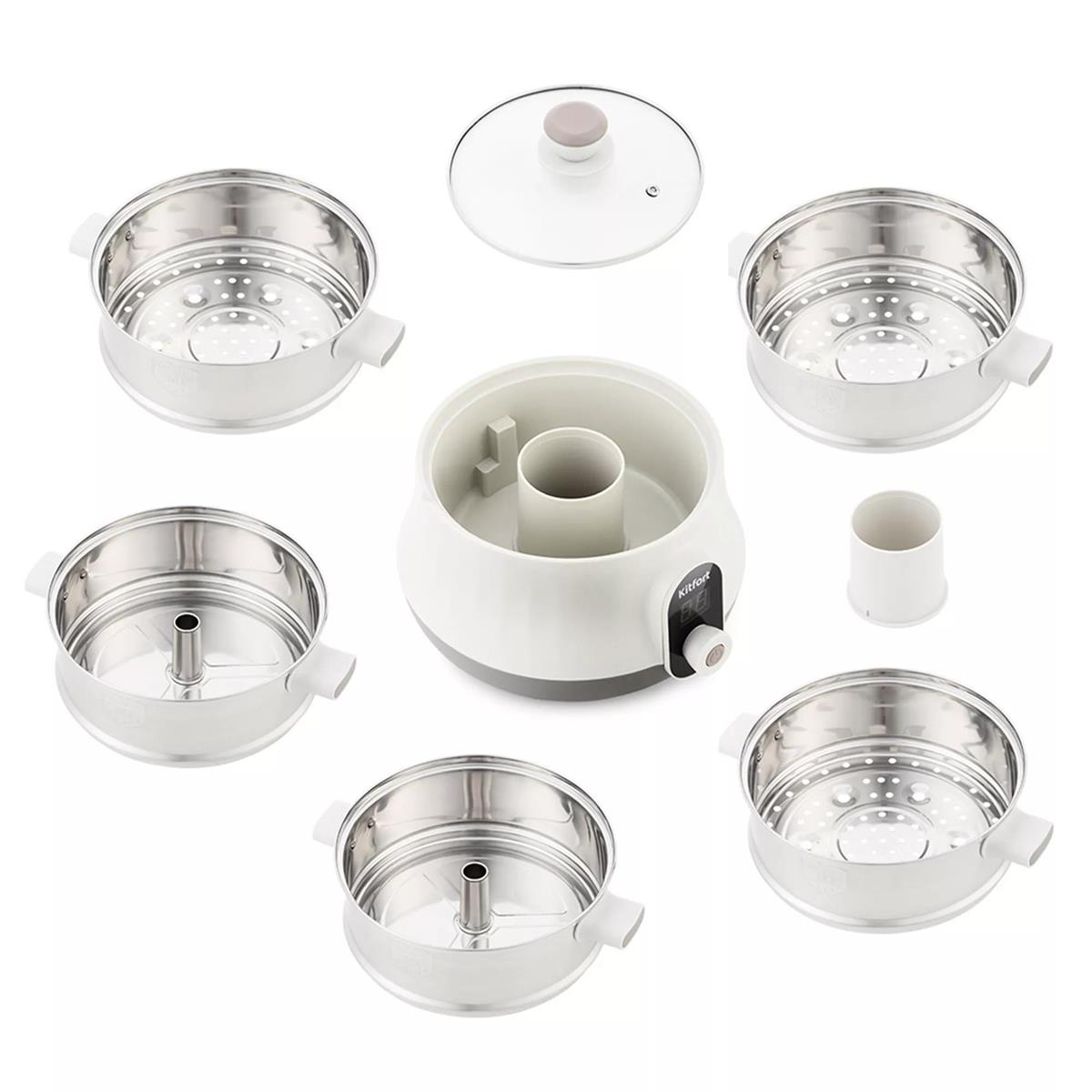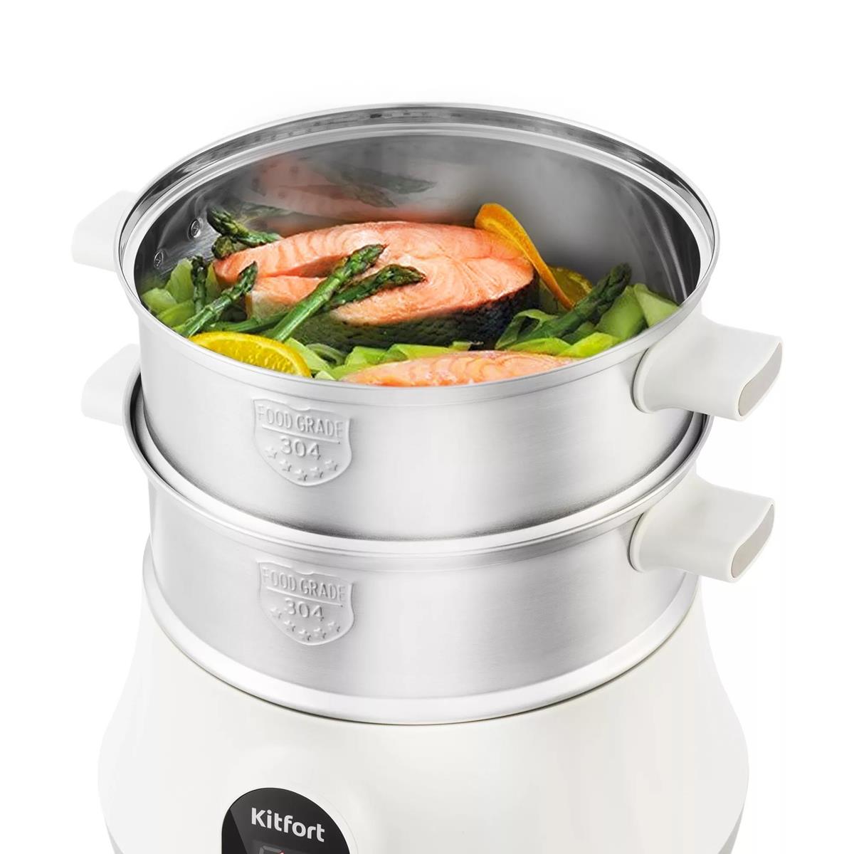 Пароварка Kitfort КТ-2035 600 Вт. Количество уровней: 5. Таймер приготовления: до 60 минут. (серый, белый)