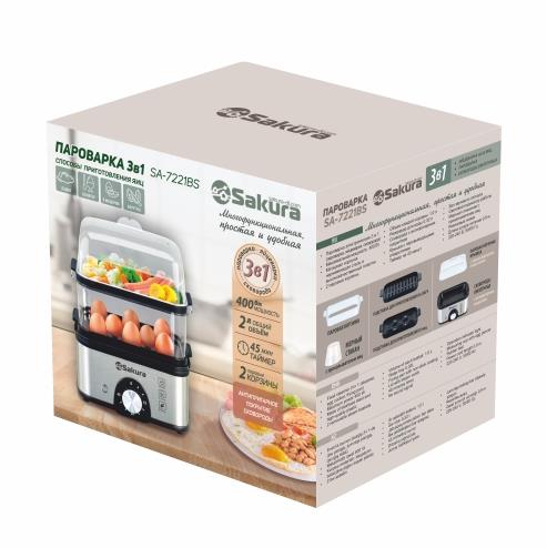 Пароварка Sakura SA-7221BS 3 в 1 (2,0л) 300-400Вт нерж/черн (черный, серебристый) - Интернет-магазин У Гриши: бытовая техника, электроника, товары для дома и др.