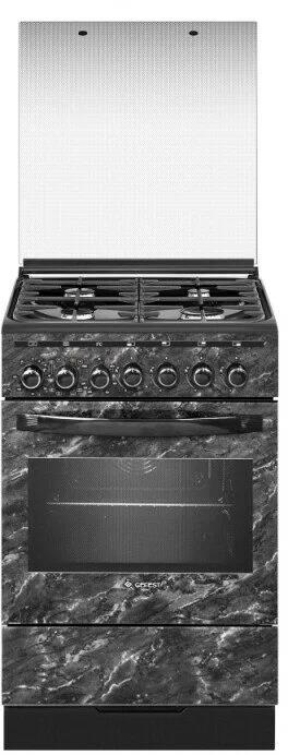 Комбинированная плита GEFEST 5302-03 выполнена в черном корпусе. В верхней его части находится панель с 4 газовыми конфорками. Функции газ-контроля позволяет избежать утечки газа. Когда затухает пламя горелки, подача газа автоматически прекращается. Для удобства предусмотрен электроподжиг: достаточно повернуть ручку, и появится пламя. Панель GEFEST 5302-03 покрыта эмалированной сталью, поэтому она не подвержена царапинам и легко очищается от загрязнений. Решетки из чугуна защищают поверхность от контакта с посудой и приподнимают ее на оптимальное расстояние для равномерного прогрева пламенем. В нижней части корпуса находится электрическая духовка объемом 55 л. Благодаря проволочным направляющим вы сможете легко вынимать противни. Встроенный термостат помогает поддерживать температуру нагрева камеры на заданном уровне. Модель имеет электромеханический таймер для контроля процесса приготовления блюд. Выдвижной ящик под духовкой предназначен для хранения кухонных мелочей.