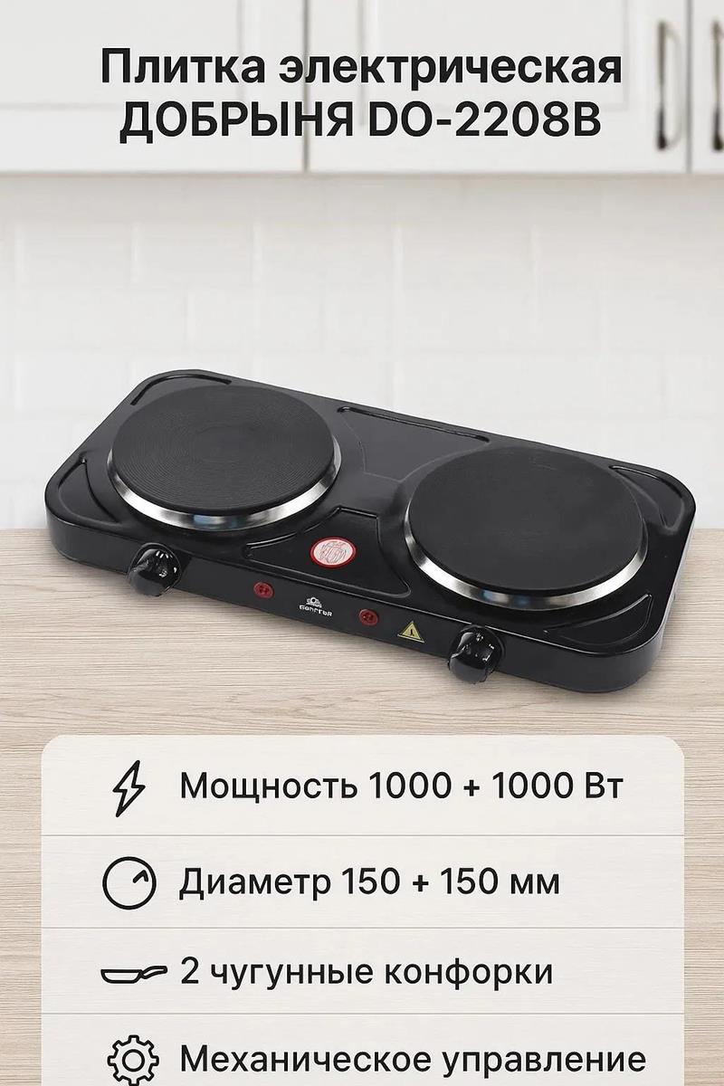 Плита настольная Добрыня DO-2208B (электрическая, чугун, черный) - Интернет-магазин У Гриши: бытовая техника, электроника, товары для дома и др.