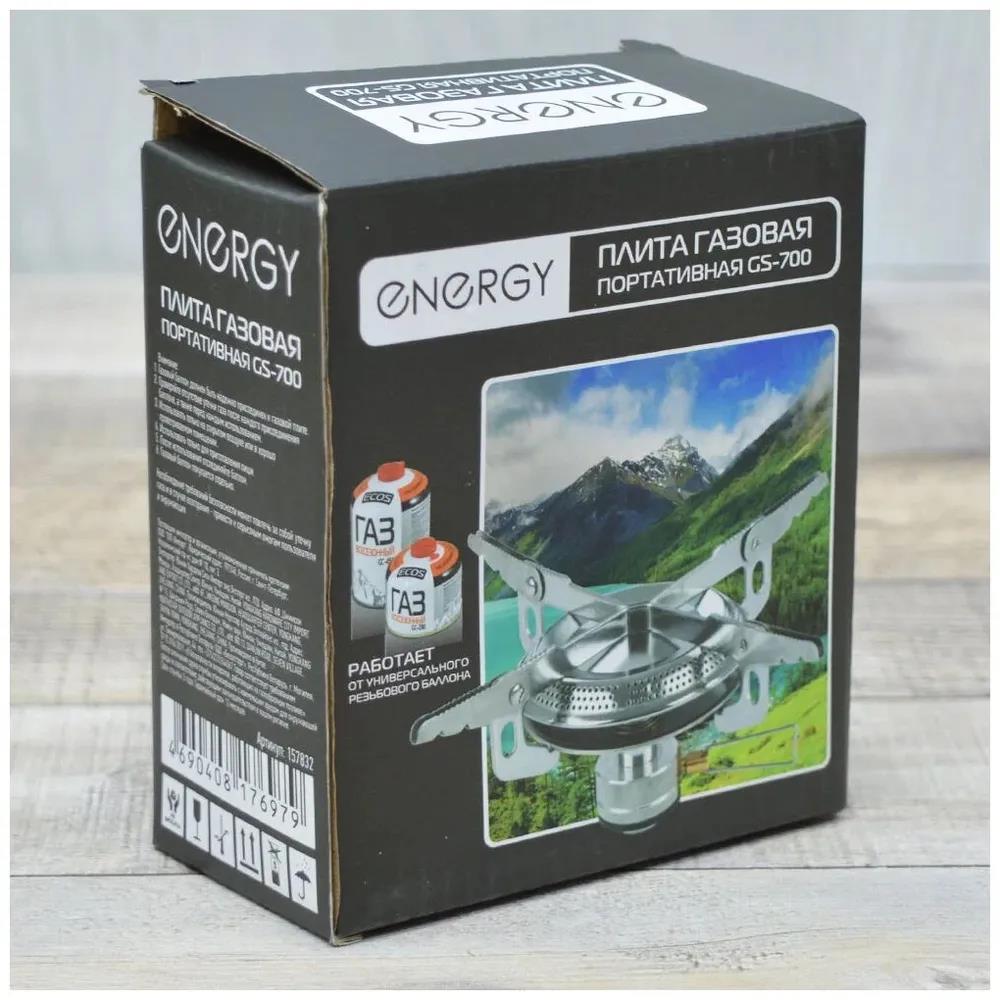 Плита настольная Energy портативная Energy GS-700 (чехол+коробка) (газовая, металл, серебристый)