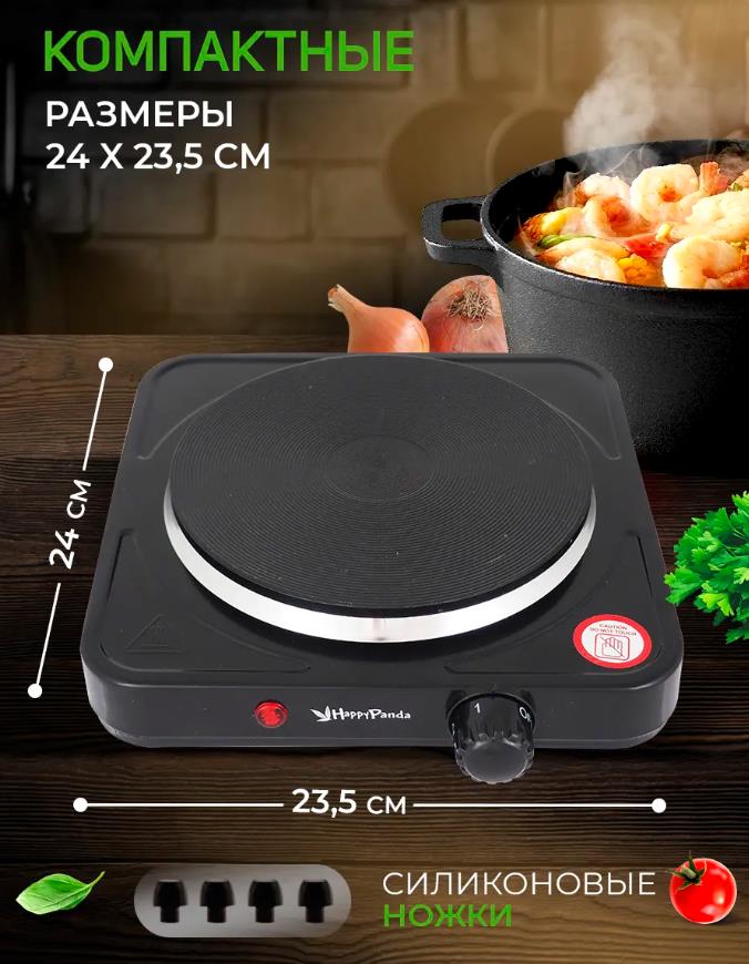 Плита настольная HAPPY PANDA HP-09BK (электрическая, чугун, черный)