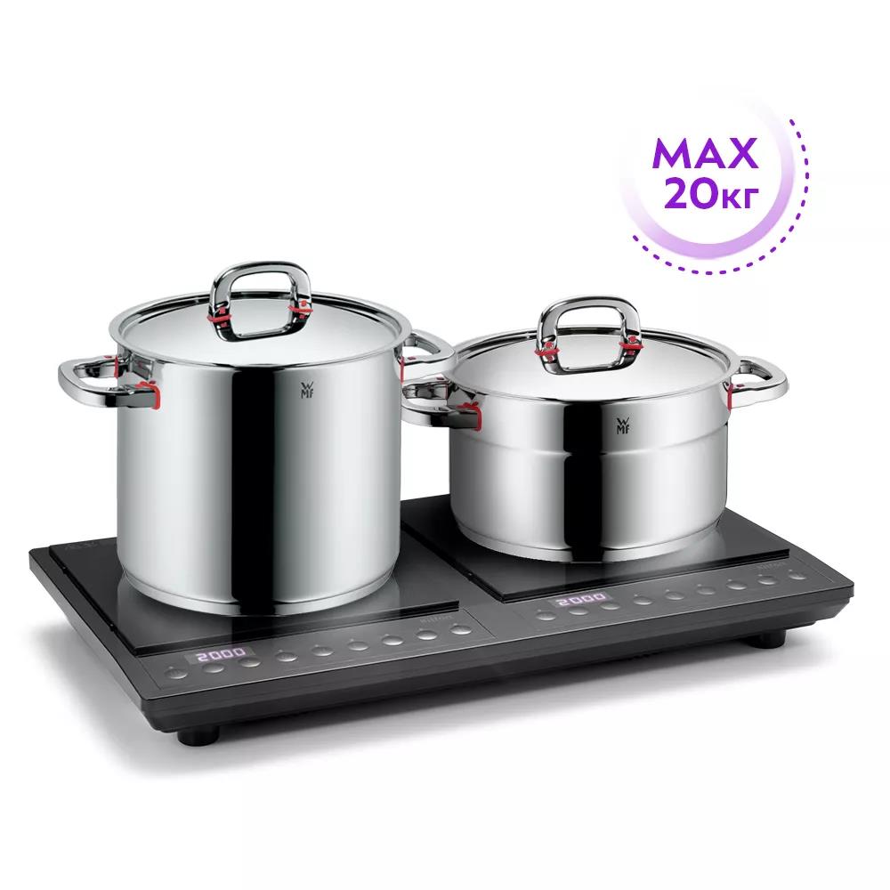 Мощностные режимы регулируются от 120 до 2000 Вт. Плита имеет таймер времени приготовления, отложенный старт, блокировку кнопок. На обратной стороне плитки встроены вентиляторы, которые способствуют быстрому охлаждению устройства во время интенсивной работы и после её завершения.