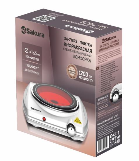 Плита настольная Sakura SA-7167S (инфракрасный, стеклокерамика, белый)