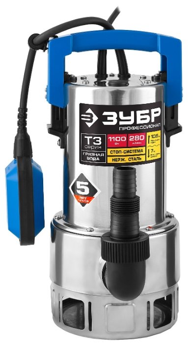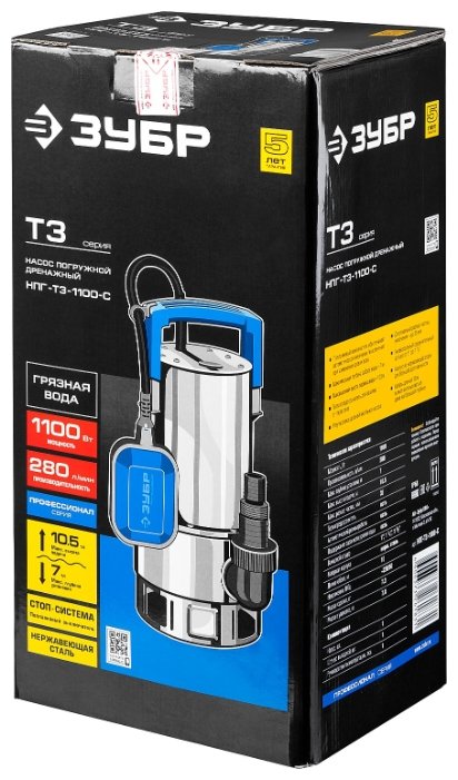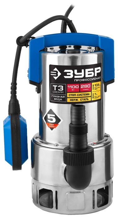 Погружной дренажный ЗУБР НПГ-Т3-1100-С 1100 Вт 10,5 м грязная)