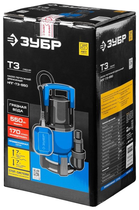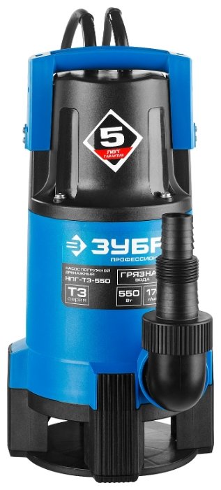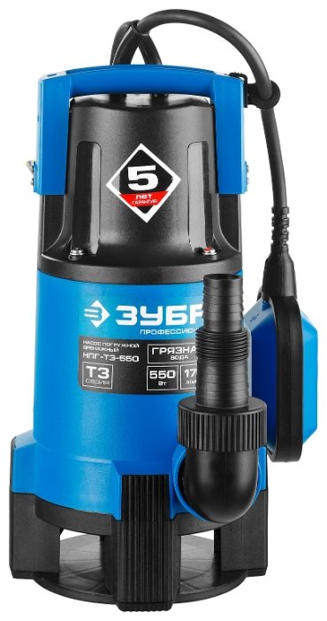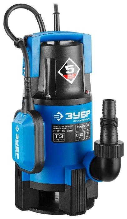 Погружной дренажный ЗУБР НПГ-Т3-550 550 Вт 7 м грязная)