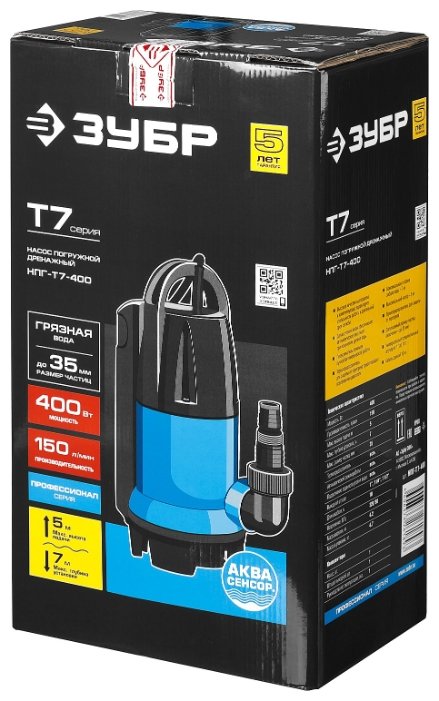 Погружной дренажный ЗУБР НПГ-Т7-400 400 Вт 5 м грязная)