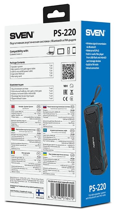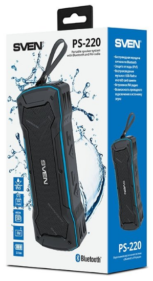 Портативная колонка SVEN PS-220 станет вашей незаменимой помощницей при организации вечеринки у бассейна или пикника на природе, поскольку обладает пластиковым влагозащищенным корпусом. Благодаря встроенному тюнеру у вас появится неограниченный доступ к композициям с различных радиостанций. В считанные минуты модель SVEN PS-220 синхронизируется с ноутбуком, планшетом или смартфоном – достаточно воспользоваться Bluetooth-интерфейсом. Характерной особенностью устройства является его способность воспроизводить треки, хранящиеся на картах microSD.
