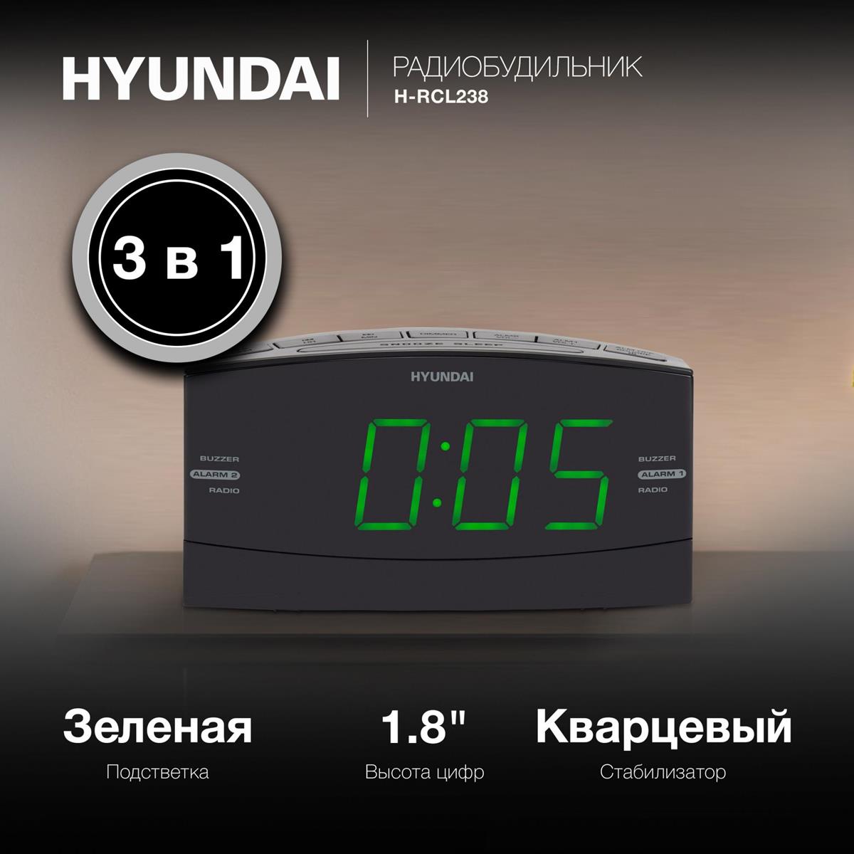 Радиоприемник Hyundai H-RCL238 LCD подсв:зеленая часы:цифровые FM черный - Интернет-магазин У Гриши: бытовая техника, электроника, товары для дома и др.