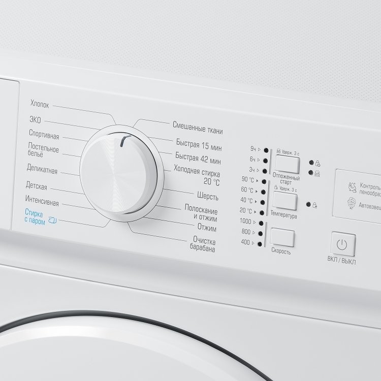 Узкая стиральная машина с инверторным мотором и функцией самоочистки барабана.