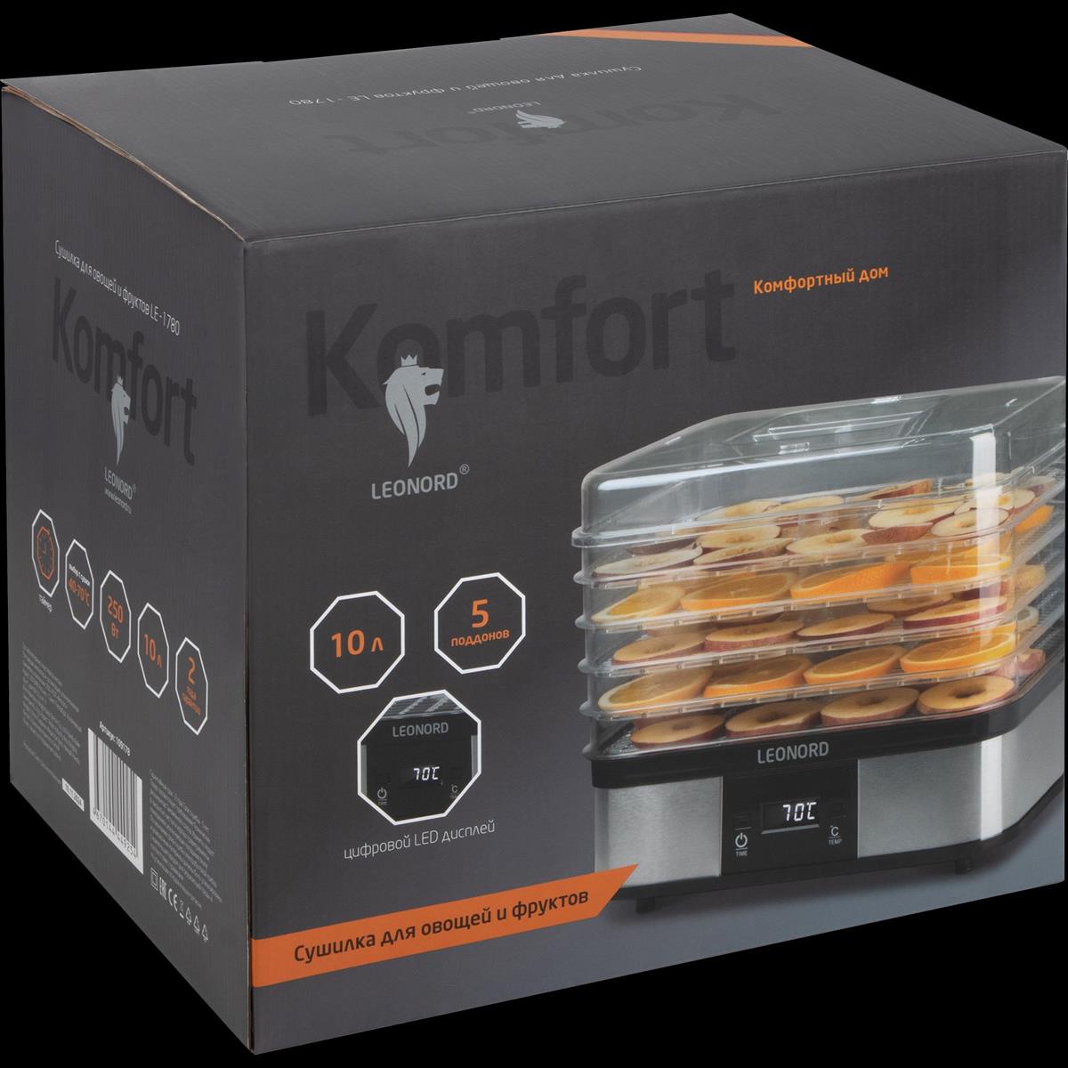 Сушилка для овощей Leonord LE-1780 (поддонов 5 шт, 250 Вт , черный, серебристый)