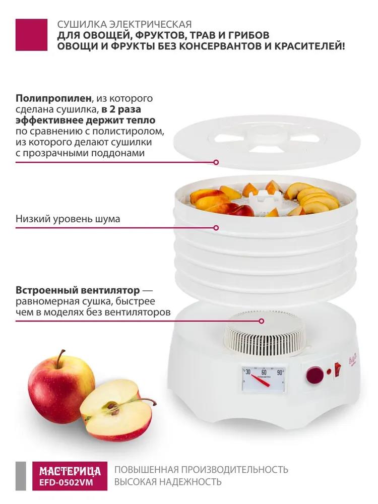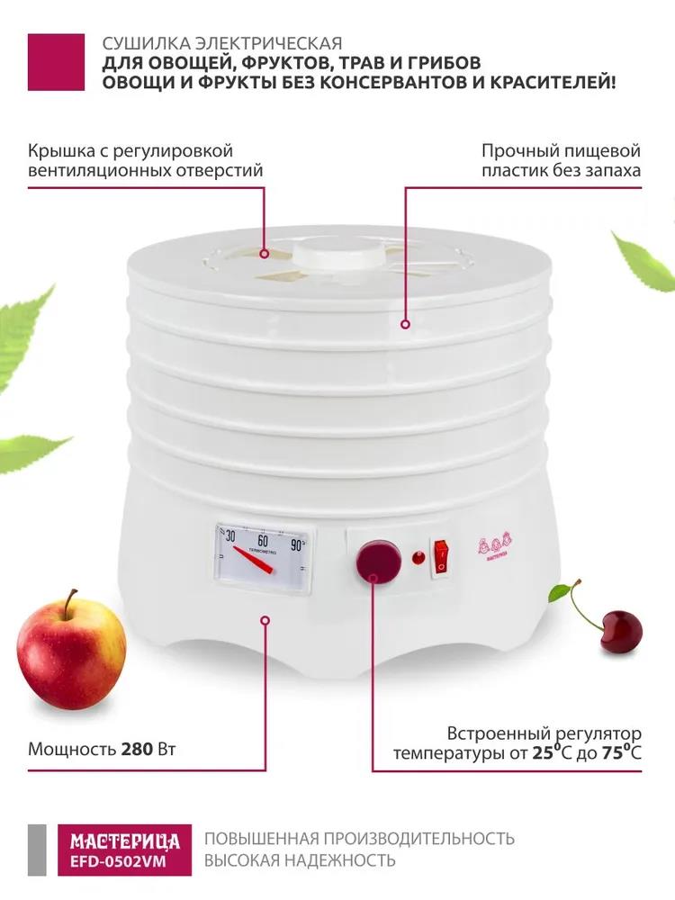 Сушилка для овощей Мастерица EFD-0502VM 5 поддонов + 1 поддон д/пастилы (поддонов 5 шт, 280 Вт , белый)