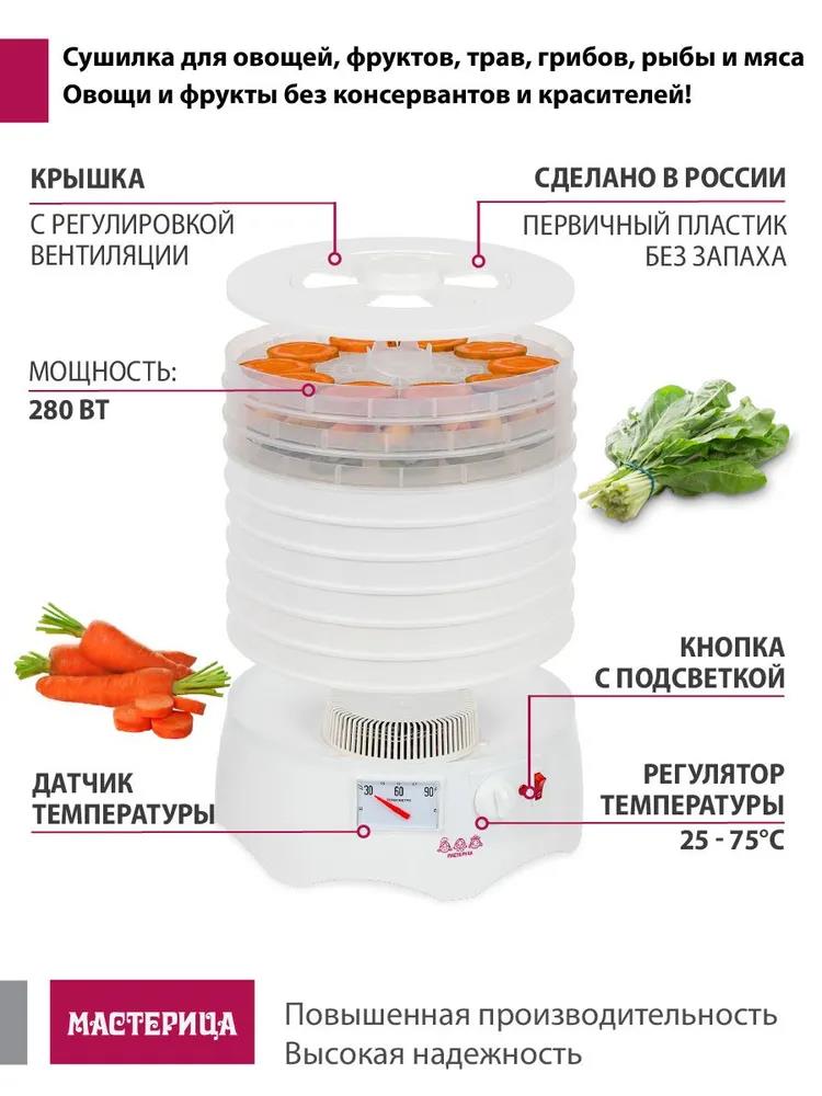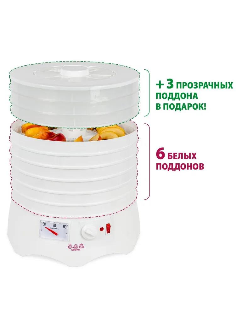 Сушилка для овощей Мастерица EFD-0903VM 6 белых поддонов + 3 прозрачных поддона в подарок, D 31.6 см (поддонов 6 шт, 280 Вт , белый) - Интернет-магазин У Гриши: бытовая техника, электроника, товары для дома и др.