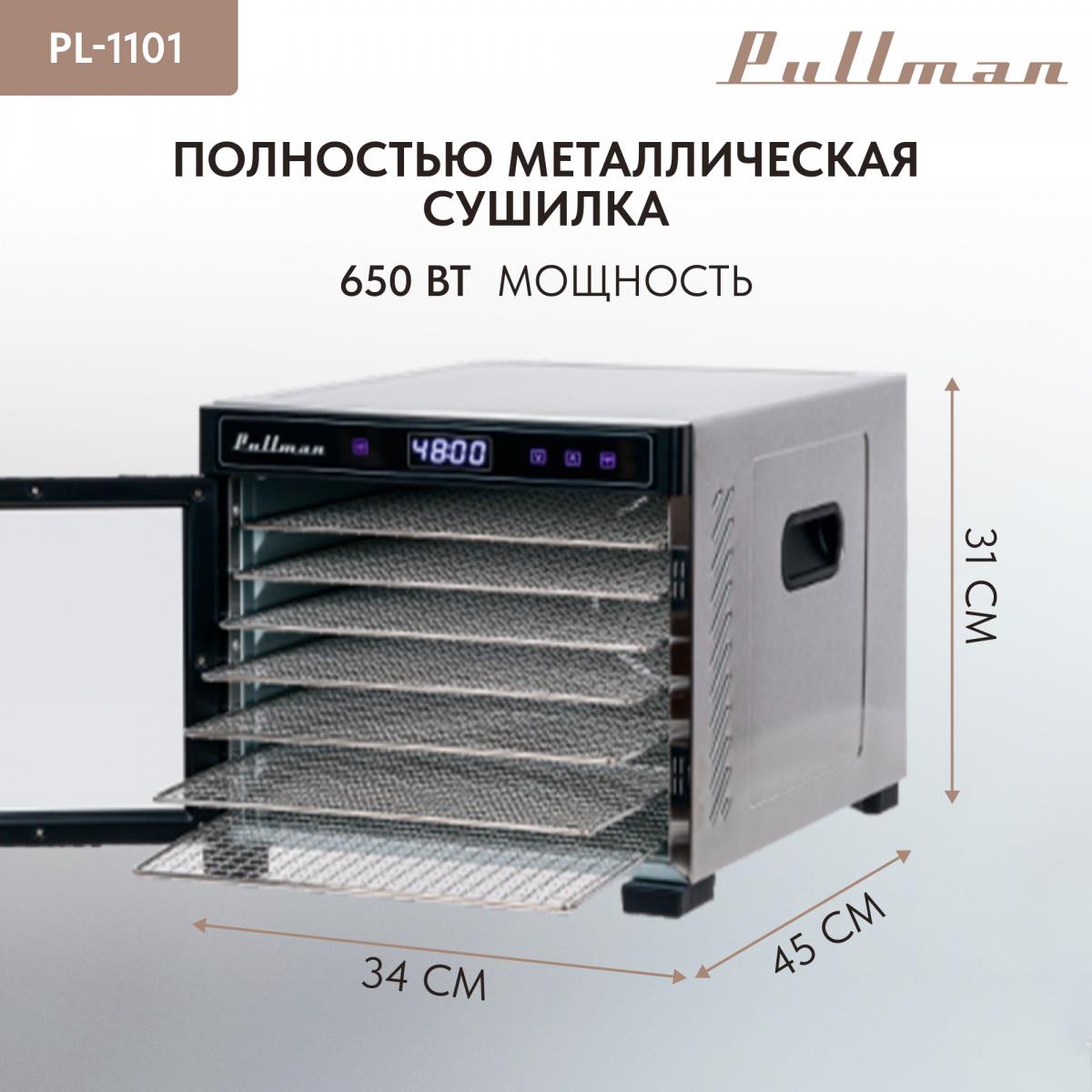 Сушилка для овощей Pullman PL-1101 (поддонов 14 шт, 650 Вт , серебристый)