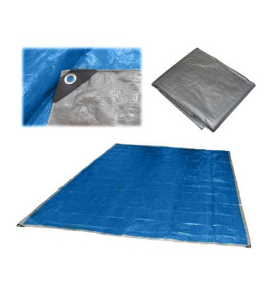 Тент универсальный хозяйственный (тарпаулин) Материал - полиэтилен, ткань из плоских нитей. Плотность 60гр/м2 Алюминевые люверсы по краям полотна, расположенные через каждый метр Армированные края Универсальный хозяйственный тент предназначен для укрытия стройматериалов, сена, зерна и других продуктов сельского хозяйства от дождя и снега, сооружения временных навесов и строительства палаток.