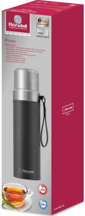 Термос Rondell Picnic RDS-1819 для напитков 0.8л. серый карт. коробка 0,8 л - Интернет-магазин У Гриши: бытовая техника, электроника, товары для дома и др.