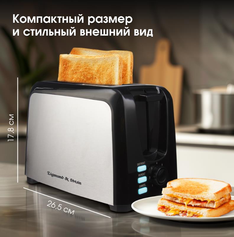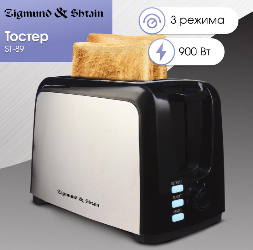 Тостер Zigmund & Shtain Kuchen-Meister ST-89 (900 Вт черный, стальной) - Интернет-магазин У Гриши: бытовая техника, электроника, товары для дома и др.