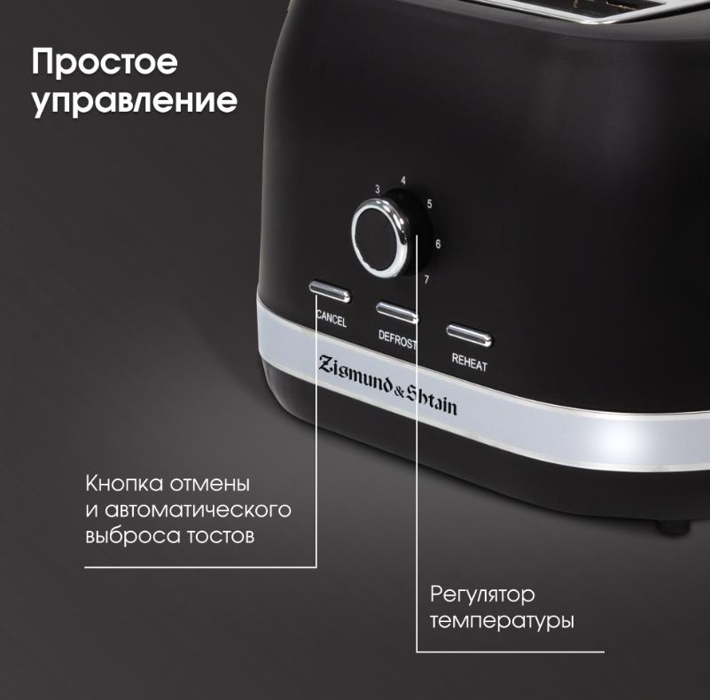 Тостер Zigmund & Shtain Kuchen-Meister ST-98 (900 Вт черный матовый) - Интернет-магазин У Гриши: бытовая техника, электроника, товары для дома и др.