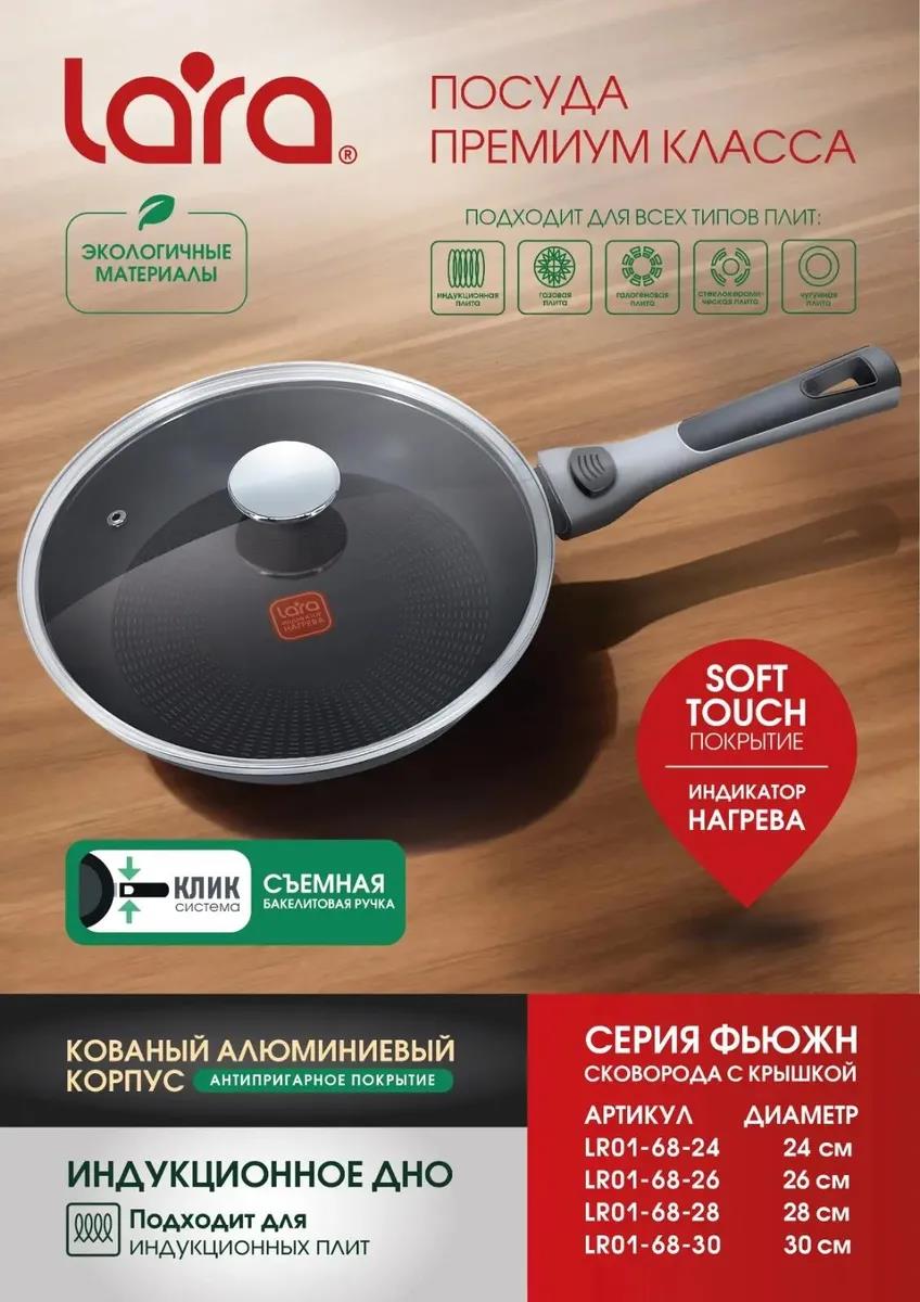 Универсальная сковорода Lara LR01-68-26 (26 см Съемные ручки)