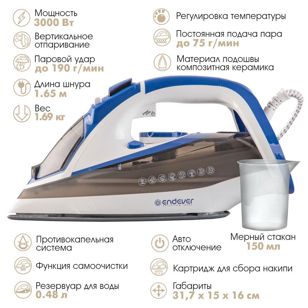 Утюг Endever Delta-231 (3000 Вт/синий, черный, белый) - Интернет-магазин У Гриши: бытовая техника, электроника, товары для дома и др.