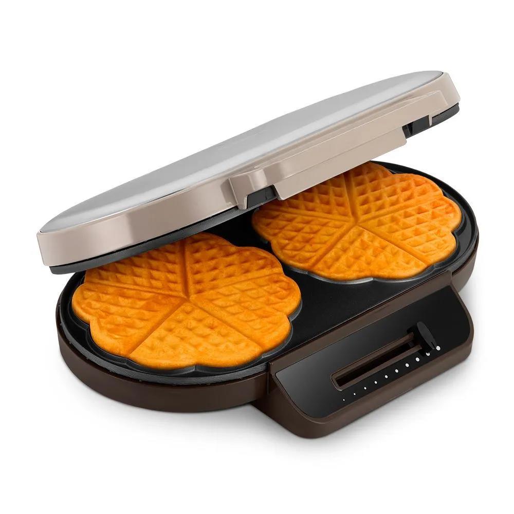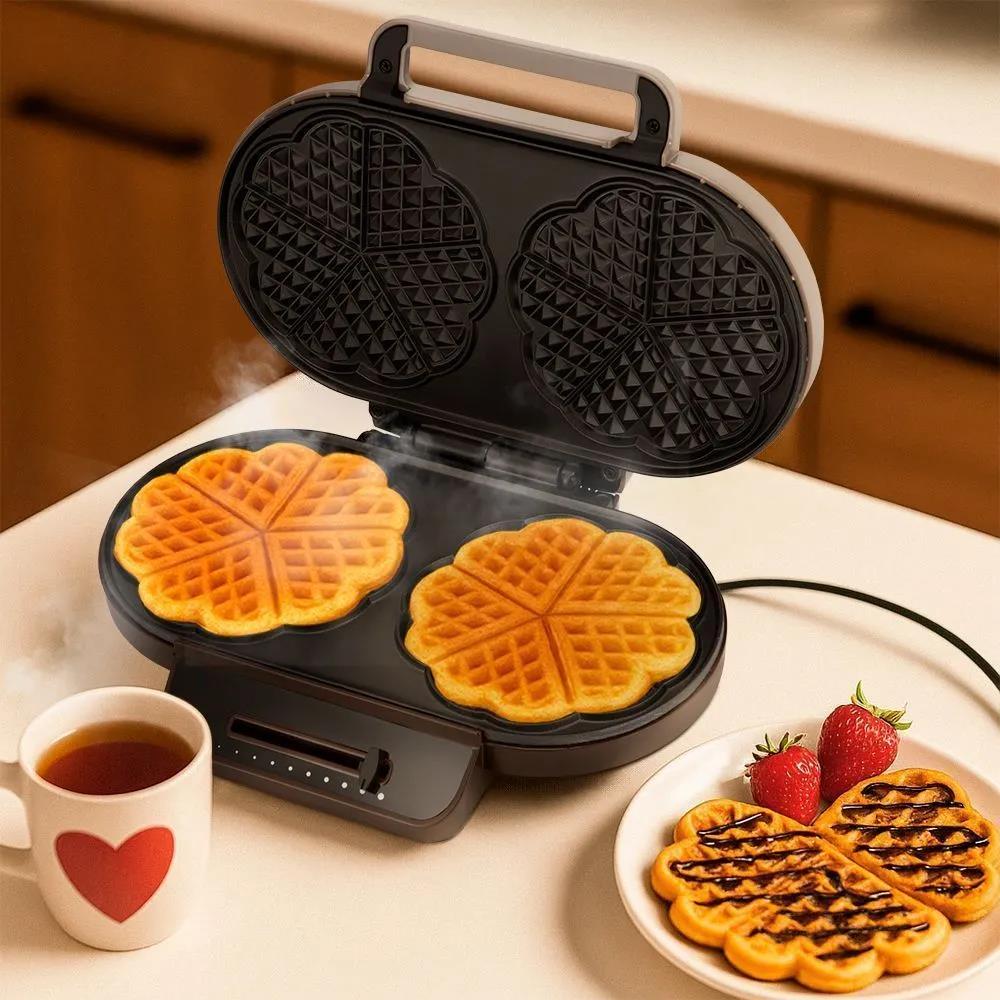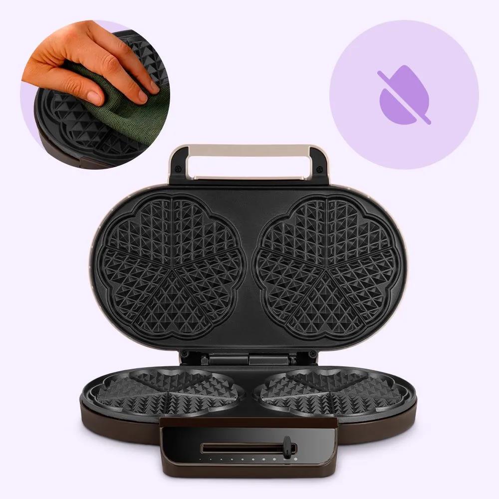 С помощью электрической вафельницы КТ-3637 вы сможете печь вафли в форме цветка, которые при желании можно разделить на маленькие сердечки. Вафельница рассчитана на приготовление 2 вафель в форме цветка или 10 маленьких вафель в форме сердечек.
