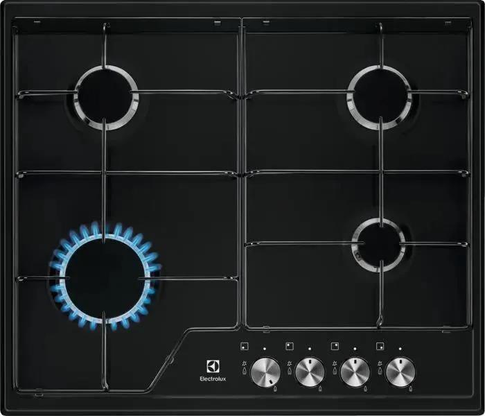 Варочная панель Electrolux EGS6424K представлена газовой технологией нагрева. Она быстрее всего нагревает посуду, что позволяет экономить время. Чёрная матовая эмаль смотрится стильно, поэтому подобные приборы будут актуальные и в современных интерьерах. Серебристая фурнитура удачно оттеняет тёмный цвет, что так же добавляет стиля. Чтобы устройство и дальше радовало глаз, стоит внимательно отнестись к его уходу. Например, после приготовления сразу протирать поверхность, чтобы пища не присыхала и не пригорала к конфоркам. Для чистки можно использовать жидкие моющие средства. (эмалированные решетки)