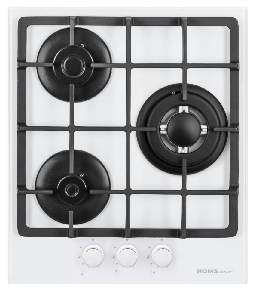 Газовая варочная поверхность HOMSair HGG433TGCWH имеет прочную чугунную решетку, за счет которой гарантируется устойчивость любой кухонной утвари. Благодаря наличию в поворотных рукоятках устройства электроподжига вам не придется пользоваться спичками или зажигалкой, чтобы поджечь газ. Газ-контроль гарантирует безопасность в том случае, если пламя случайно погасло. Дополнительным плюсом является наличие вок-конфорки.