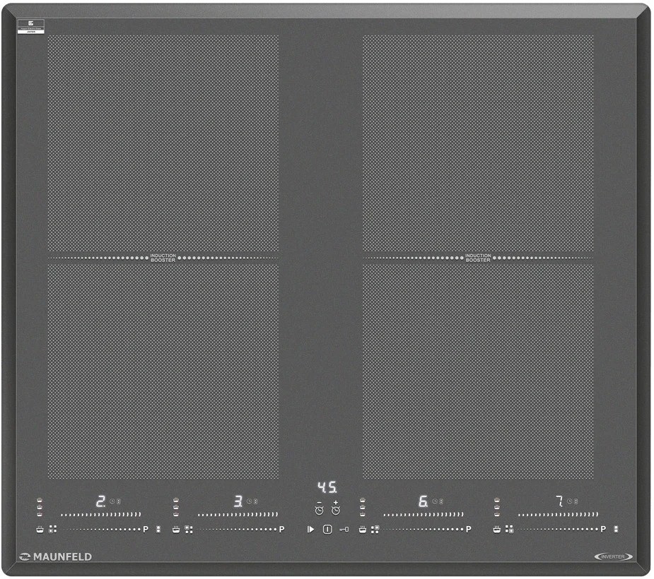 Индукционная варочная панель Maunfeld CVI594SF2DGR Inverter - это современное и функциональное кулинарное оборудование, которое поможет вам приготовить любое блюдо с максимальной эффективностью и комфортом. Стильный графитовый цвет и современный дизайн делают эту варочную панель идеальным дополнением к любому интерьеру кухни. Материал поверхности из стеклокерамики не только придает элегантность внешнему виду, но и обеспечивает превосходное распределение тепла, устойчивость к высоким температурам и легкую очистку. Панель оснащена четырьмя индукционными конфорками. Это позволяет быстро и равномерно нагревать посуду, уменьшая время приготовления пищи. Кроме того, наличие функции Booster (усиление мощности) позволяет дополнительно увеличить мощность нагрева для более быстрого приготовления пищи. Управление панелью осуществляется с помощью удобных сенсорных кнопок и слайдера, которые позволяют легко выбирать нужную ступень мощности (всего их 9) и настраивать время приготовления с помощью встроенного таймера.