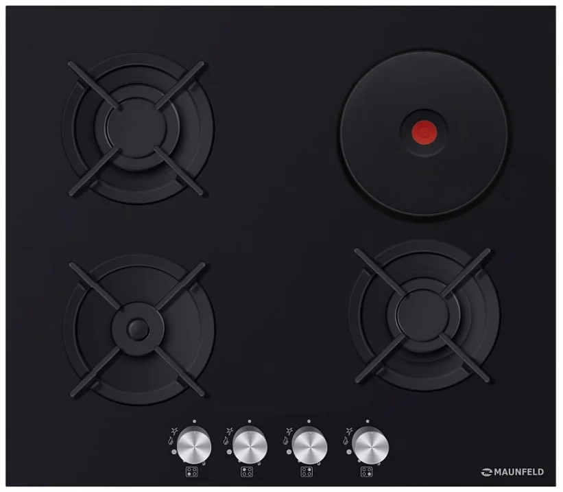 Варочная панель Maunfeld EEHG.64.13CB.KG выполнена в черном цвете. Модель из коллекции «Модерн» относится к комбинированному типу. Это значит, что три из четырех конфорок являются газовыми и одна электрической. Габариты ниши для встраивания равны 56×48.5 см. Материал поверхности закаленное стекло повышенной прочности, устойчивое к механическим воздействиям и влиянию высоких температур. Чугунные решетки отличаются долговечностью и придают стиля внешнему виду. Прибор отлично впишется в современный кухонный интерьер. Механическое управление, простое и надежное, осуществляется с помощью поворотных переключателей. Главная особенность которых цельнометаллической полнотелой конструкции. Подача газа может быть двух видов как магистрального, так и из балона. Устройство оснащено функцией автоподжига, которая сэкономит ваше время и деньги. Кроме того, в доме, где имеются дети, позволит научить их самостоятельному включению плиты без риска для жизни. За безопасную эксплуатацию отвечает опция газ-контроль, которая прекратит подачу топлива в случае возникновения экстренной ситуации.