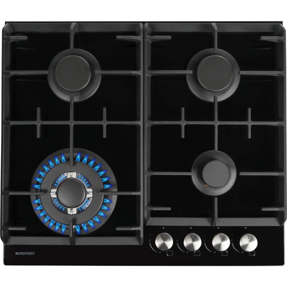 Газовая варочная поверхность NORDFROST HM 6044 B выполнена из безопасного закаленного стекла в черном цвете, оснащена 4 конфорками с газовым подключением. Черное закаленное стекло выглядит роскошно и практично в любом интерьере кухни, идеально справляется с температурными перепадами и механическими воздействиями. Толщина стекла 8 мм. Все конфорки разные по диаметру и мощности огня. WOK – конфорка с тройным рядом пламени и мощностью 3,4 кВт позволяет быстро закипятить воду, поджарить мясо или рыбу с хрустящей корочкой, а также готовить блюда из восточной кухни. Эффективная система безопасности газ-контроль контролирует подачу газа. В случае пролива жидкости на варочную панель или затухания пламени от сквозняка, подача газа прекращается автоматически. Мощность пламени любой горелки можно регулировать с помощью поворотных переключателей, в которые встроен автоматический электророзжиг. Данная функция позволит одним нажатием руки легко зажечь нужную конфорку без использования спичек. Поверх конфорок на варочной панели установлены прочные чугунные решетки, они имеют специальную форму, которая обеспечивает меньшую нагрузку на стеклянное покрытие.