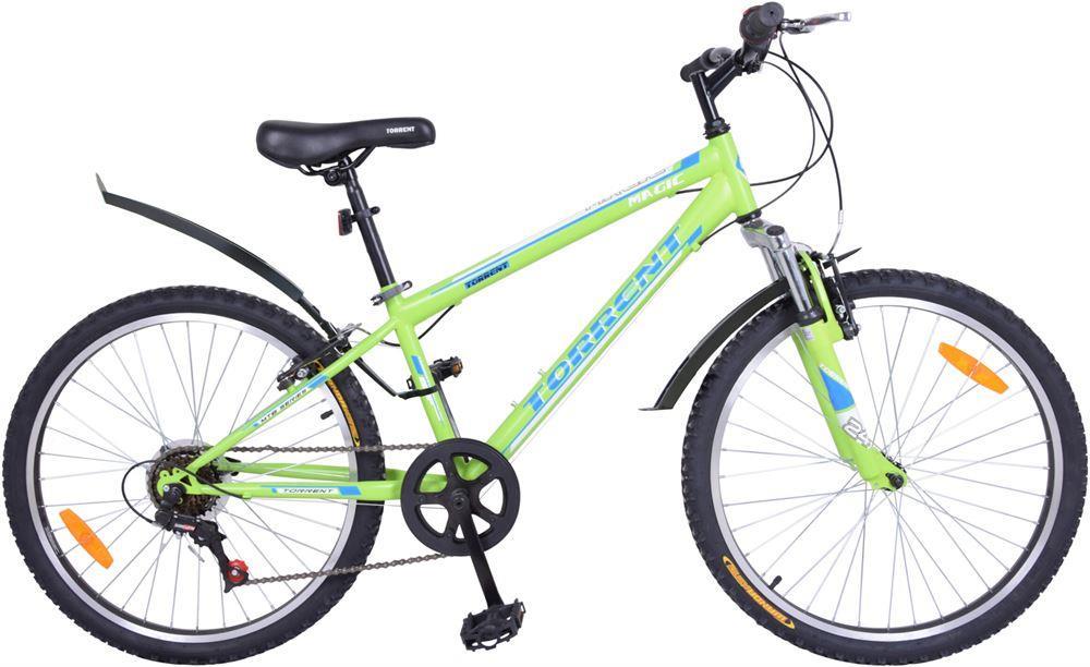 Велосипед TORRENT Magic - это горный велосипед, предназначенный для подростков и взрослых с ростом до 155 см. Он подходит для езды по городским велодорожкам, пересеченной местности, а также для сельских и загородных прогулок. Рама велосипеда выполнена из стали, что обеспечивает прочность и долговечность конструкции. Семискоростная система позволяет перемещаться по дорогам со сложным рельефом, включая ямы, горки и пологие спуски. Комфортность езды обеспечивается за счет мощного переднего амортизатора, который гасит толчки и вибрации при столкновении колес с препятствиями. Ободья колес двойные, декорированные в черный цвет, и оснащены шинами со «злым» рисунком протектора, адаптированными для езды по грунтовым дорогам и дорогам с твердым покрытием. Руль велосипеда имеет ширину 60 см и оснащен логотипами. Передний и задний тормоз рычажный «V-brake» обеспечивает надежное торможение. Сиденье средней мягкости регулируется по высоте с помощью ручного зажима «Quick release».