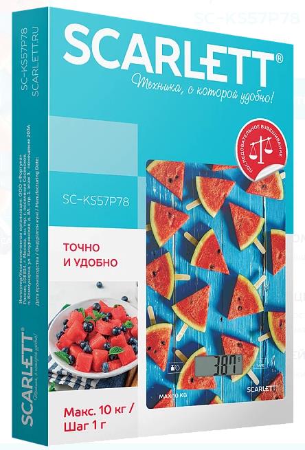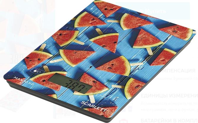 Весы кухонные Scarlett SC-KS57P78 макс.вес:10кг арбуз (рисунок, красный) - Интернет-магазин У Гриши: бытовая техника, электроника, товары для дома и др.