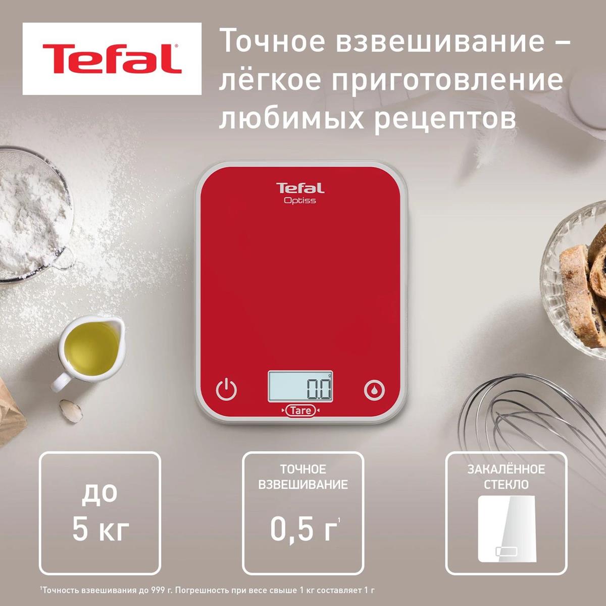Весы кухонные Tefal Optiss BC50U3V0 (красный) - Интернет-магазин У Гриши: бытовая техника, электроника, товары для дома и др.