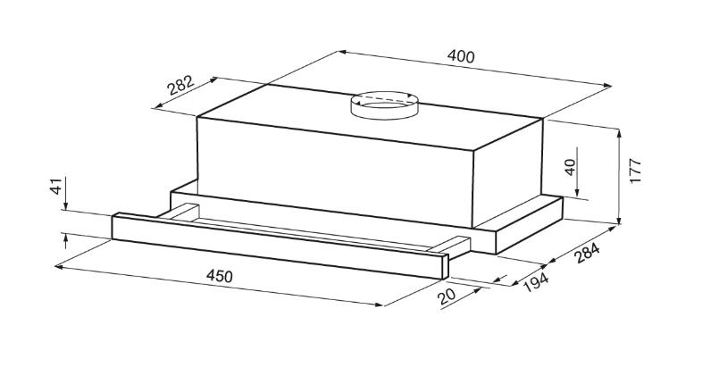 KAMILLA F 450 — стильная, компактная и эффективная вытяжка, идеально подходящая для кухонь и квартир-студий небольшой площади.