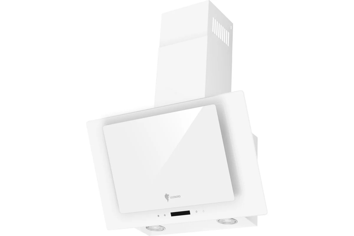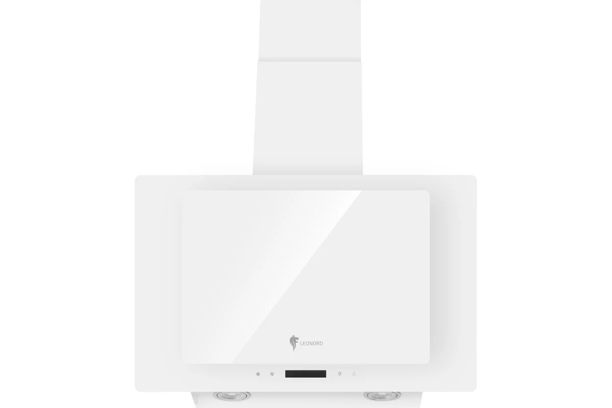 LEONORD LEH-060-60W — это наклонная кухонная вытяжка шириной 60 см, выполненная в белом цвете с отделкой из стекла. Модель сочетает современный дизайн с сенсорным управлением и предназначена для работы в режимах отвода и рециркуляции воздуха.