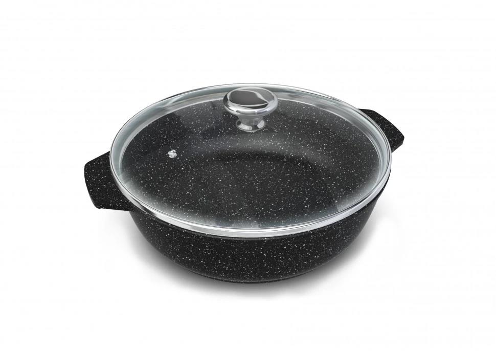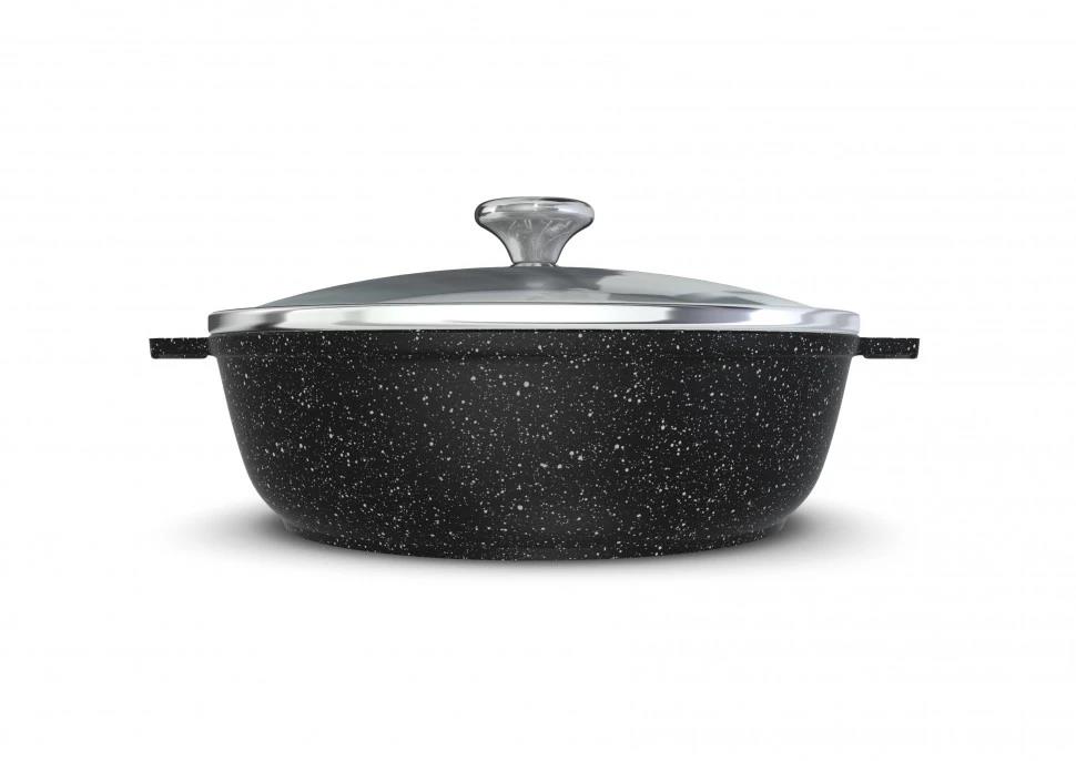 Жаровня НЕВА МЕТАЛЛ ПОСУДА 186530 со стекл. крышкой 3л "Каменная" Черный гранит алюминий 3 л